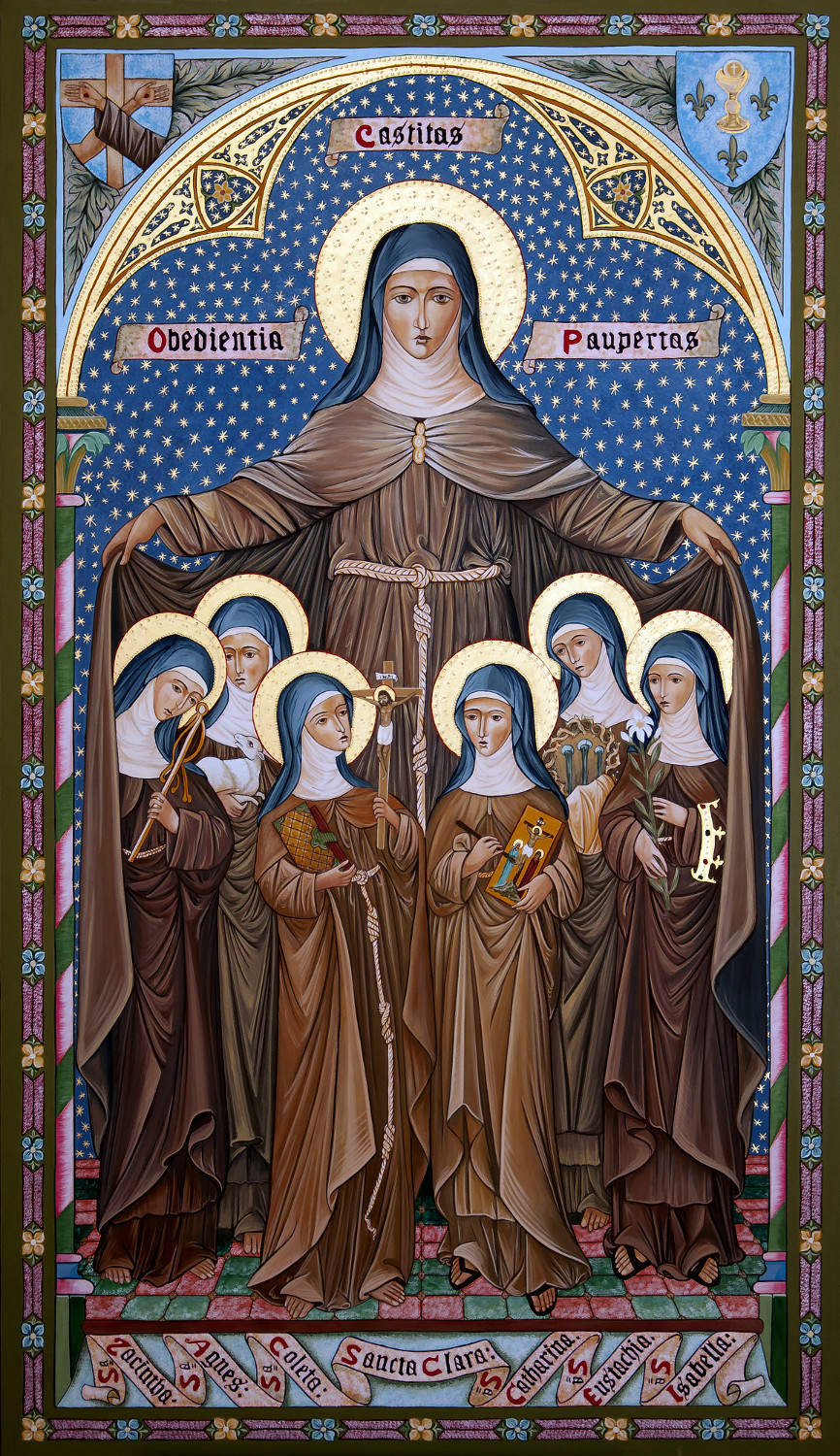 Hilarious poster with the cast members artificially pasted into an old painting of Clare of Assisi. Yes, the Photoshop job is painfully bad but that's probably on purpose. Irreverent and funny.